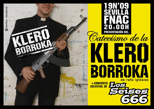 El próximo 19 de Noviembre el ilustrador de la Klero Borroka y colaborador de La Haine, presentará en Sevilla lo que será el primer volumen de su particular catecismo. La edición es la recopilación de las primeras colaboraciones del autor, en su apartado fijo en el periódico nacional de la CNT. En el se publica mensualmente una ilustración (a medio camino entre el diseño y la poesía visual) y un breve texto de apoyo a dicha imagen. Es el primer librito de una serie de sucesivas entregas, donde en clave muy crítica se analiza y pone en duda determinadas acciones de la jerarquía vaticana y allegados, no concordantes e incoherentes a mi humilde entender con las palabras que parece que dejó un tal Cristo.